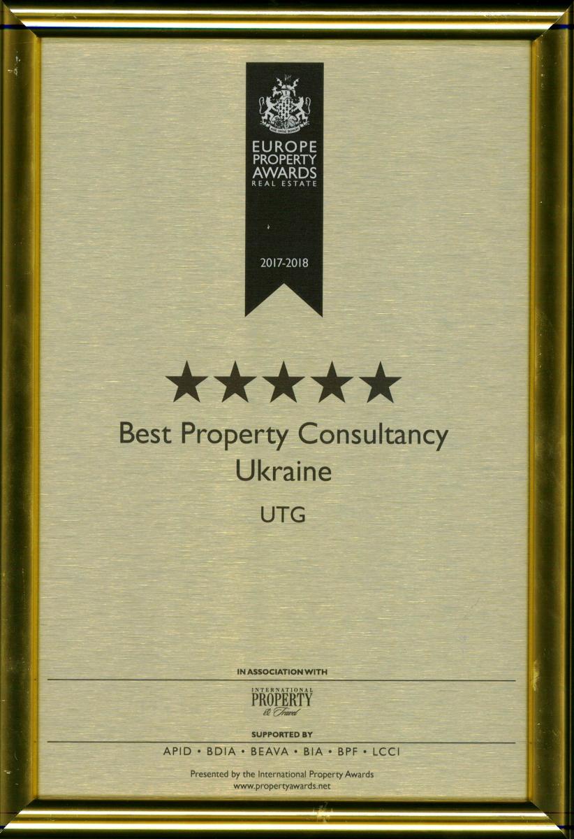 Компанія UTG була визнана кращою консалтинговою компанією України, отримавши відразу 5 зірок міжнародної премії European Property Awards 2017-2018 в номінації «Консультант в нерухомості України». Отримання нагороди від European Property Awards 2017-2018, за словами організаторів премії, є чітким підтвердженням високого професіоналізму і її істотних конкурентних переваг компанії UTG не тільки на українському, а й європейському ринках.